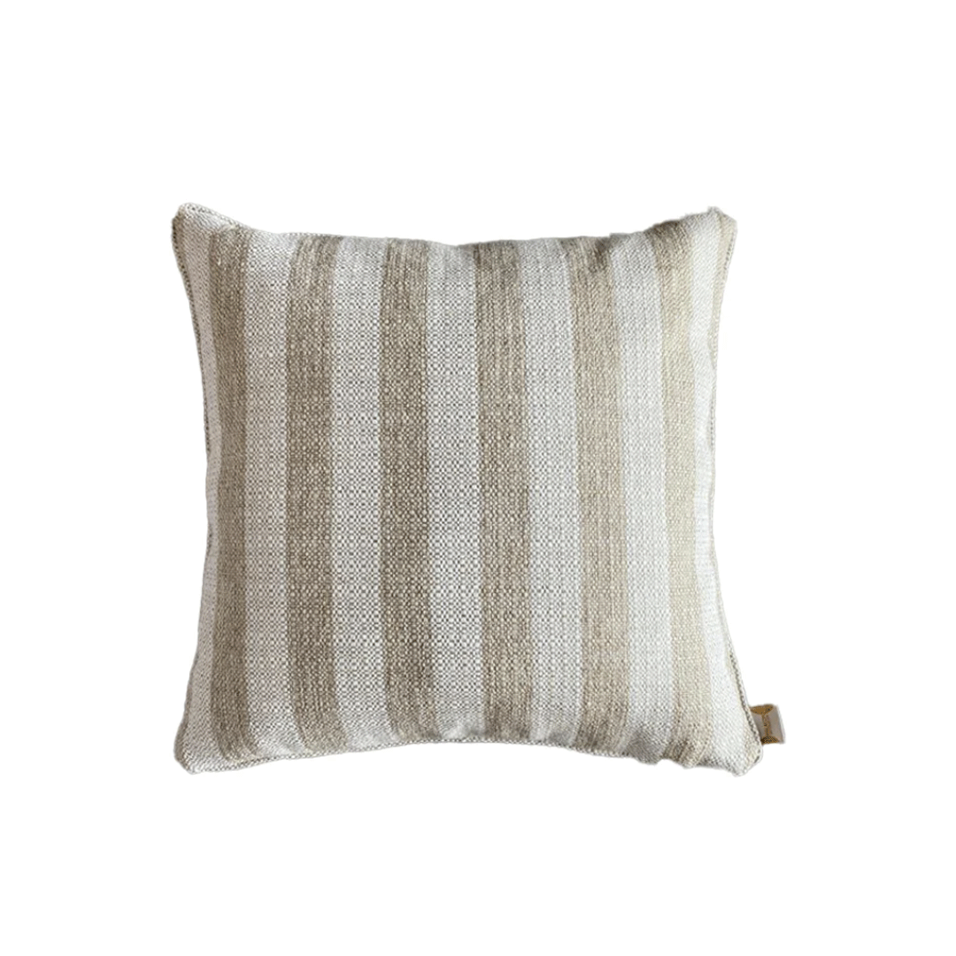 This cushion has a beautifully understated coastal elegance. The alternating vertical stripes in soft beige and ivory evoke sun-bleached driftwood and sandy shores—perfect for a beach-inspired decor palette. The texture looks woven, adding a tactile, artisanal feel that complements natural materials like rattan, linen, or reclaimed wood.