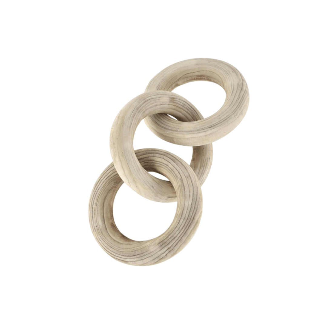 Crafted from natural wood, this intertwined ring sculpture brings organic movement and coastal elegance to any space. Its smooth curves and artisanal finish evoke driftwood simplicity—perfect for styling coffee tables, consoles, or open shelving with sculptural warmth.