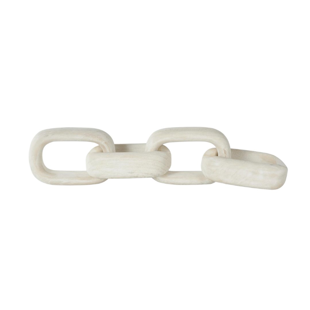 Carved from natural wood, this coastal-inspired chain sculpture brings organic texture and laid-back sophistication to any space. Its smooth links and sun-washed finish evoke driftwood treasures and seaside serenity—perfect for styling on coffee tables, consoles, or open shelving with effortless charm.