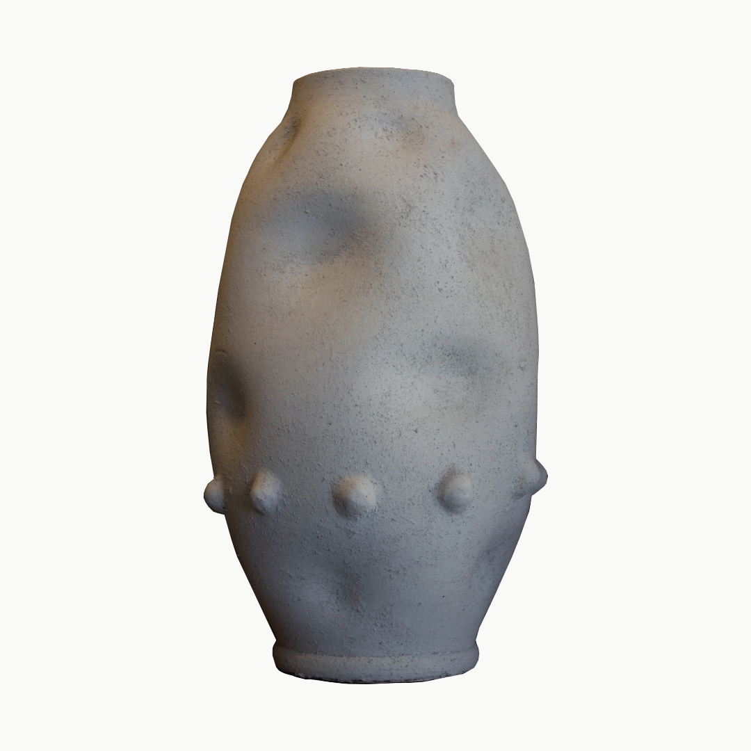 This sculptural ceramic vase features a soft matte finish and an organic silhouette, accented with subtle dimples and rounded details. Its earthy texture and minimalist form evoke coastal serenity and artisanal craftsmanship—perfect for styling shelves, consoles, or sunlit corners with quiet elegance.