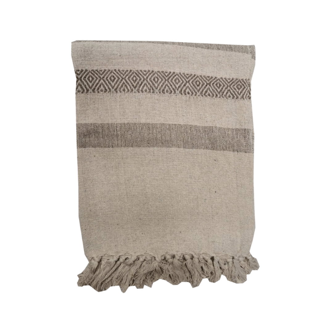 Made from 100% cotton, this soft and breathable throw adds natural texture and cozy charm to any armchair or lounge space. Its beige and brown palette evokes driftwood tones and sunbaked landscapes—ideal for beachside, rustic, or minimalist settings. Lightweight and inviting, it’s perfect for layering or draping as a relaxed decorative accent.